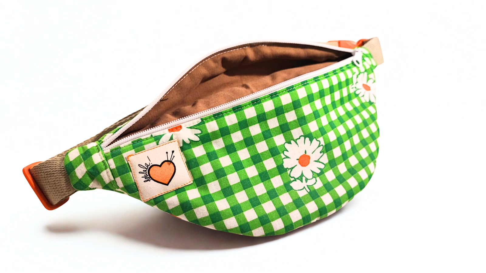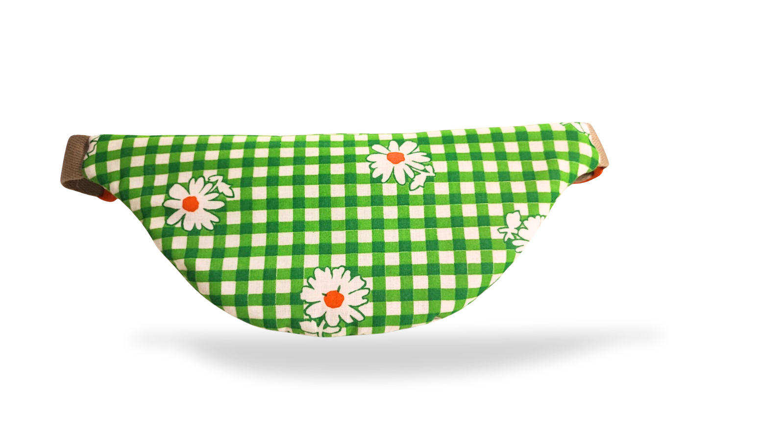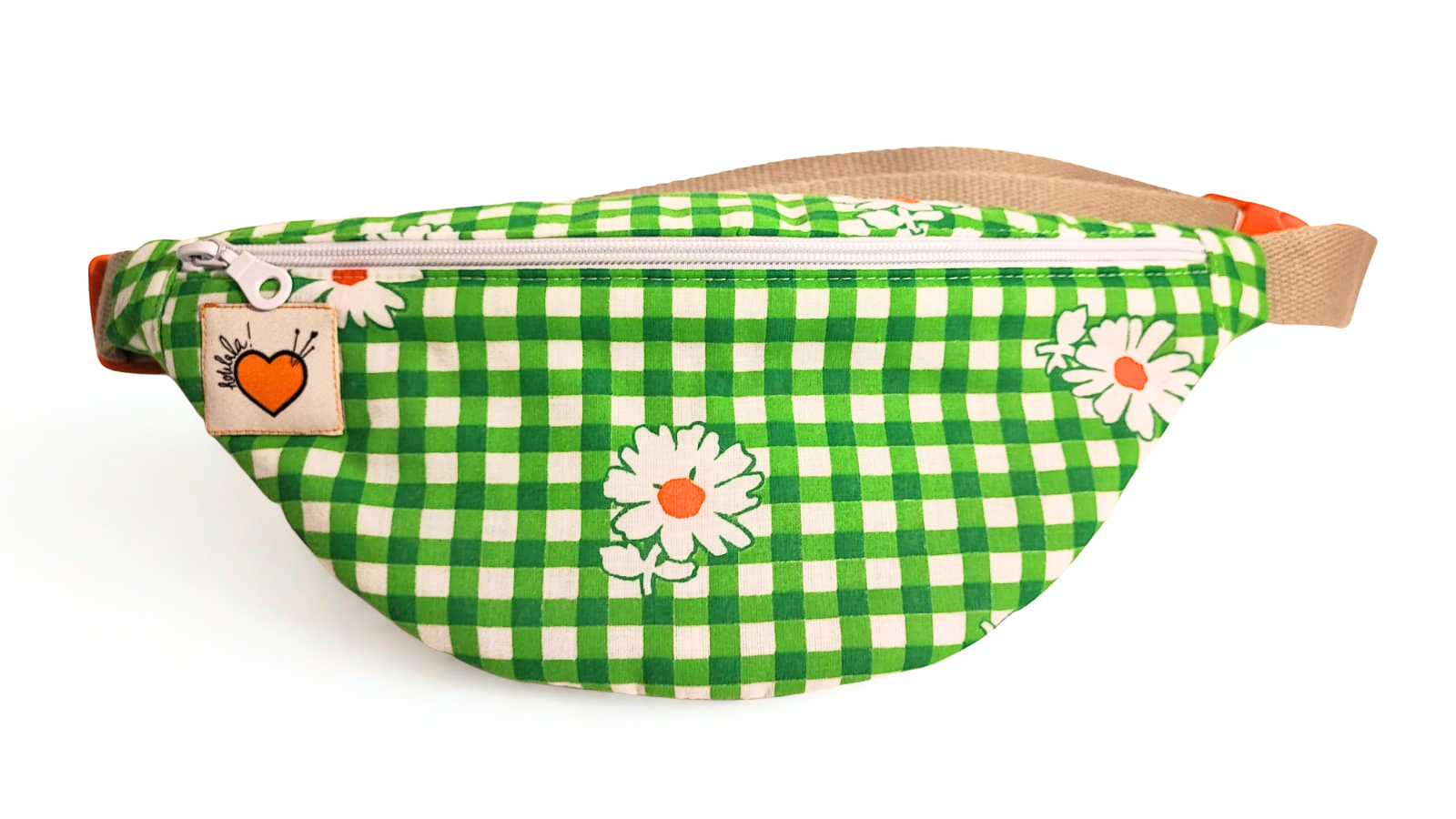 La banane upcyclée “Vichy Bloom Garden” est une création artisanale authentiquement rétro. Fabriquée dans mon atelier Landais, elle met en valeur un magnifique tissu vintage des années 70, récupéré et revalorisé.